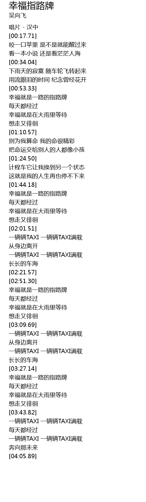 | [02:01.91] | 一辆辆TAXI 一辆辆TAXI满载 |