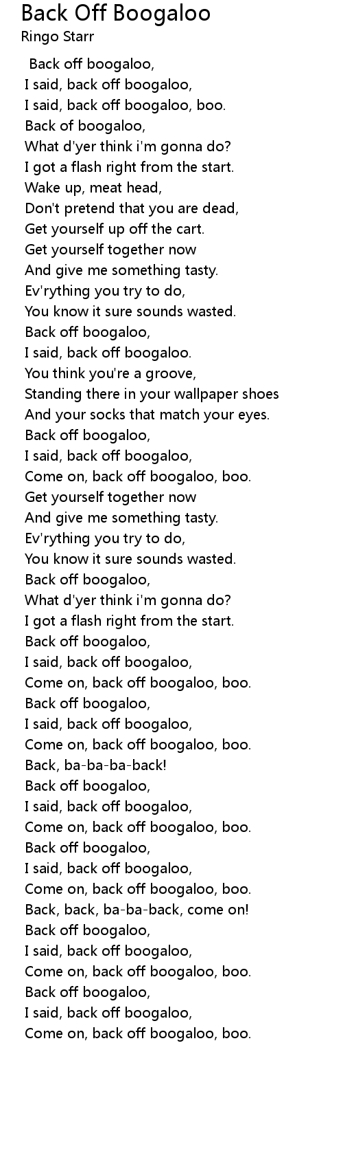 Come on, back off boogaloo, boo. |