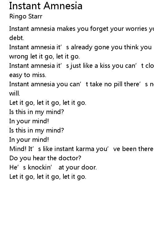 | Instant amnesia you can' t take no pill there' s no medicine so it must be god will. | |