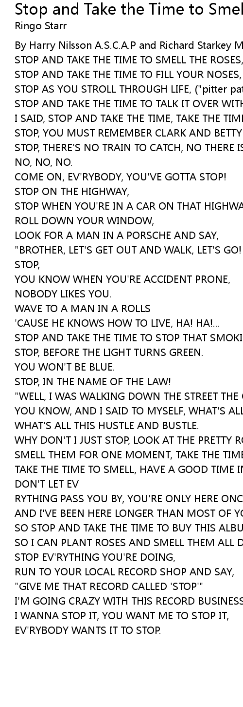 STOP AND TAKE THE TIME TO SMELL THE ROSES, |