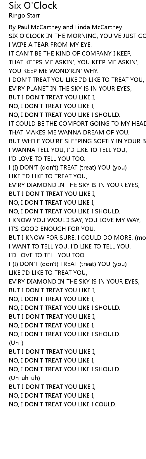 SIX O'CLOCK IN THE MORNING, YOU'VE JUST GONE TO SLEEP, |