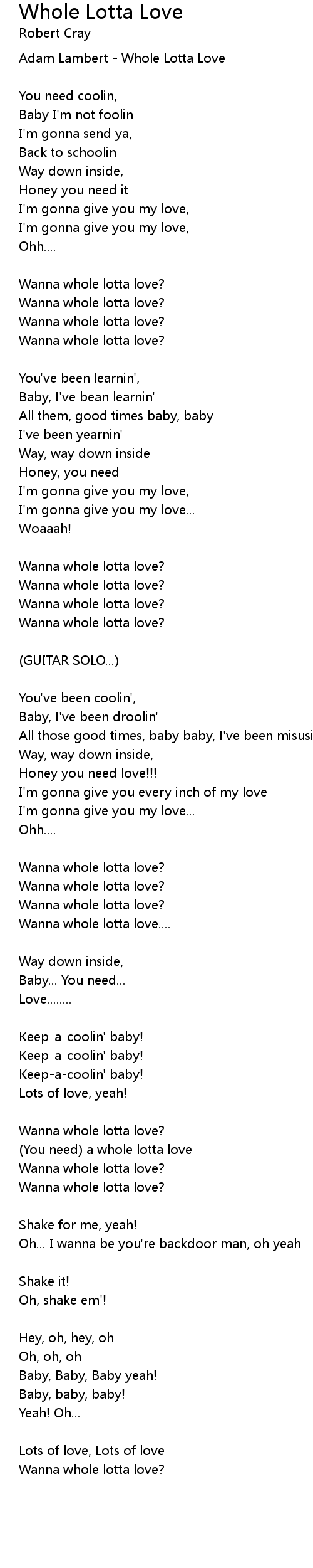 Whole Lotta Love Lyrics