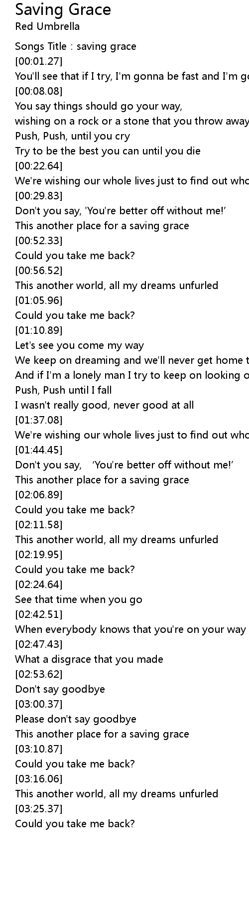 | [00:40.52] | Don' t you say, ' You' re better off without me!' |
