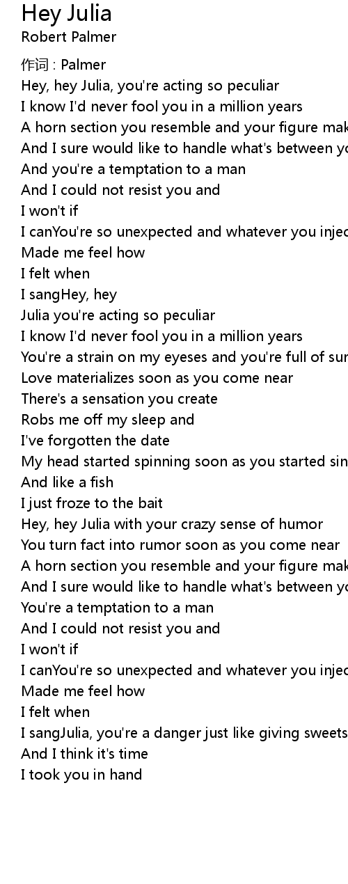| Hey, hey Julia, you' re acting so peculiar | |