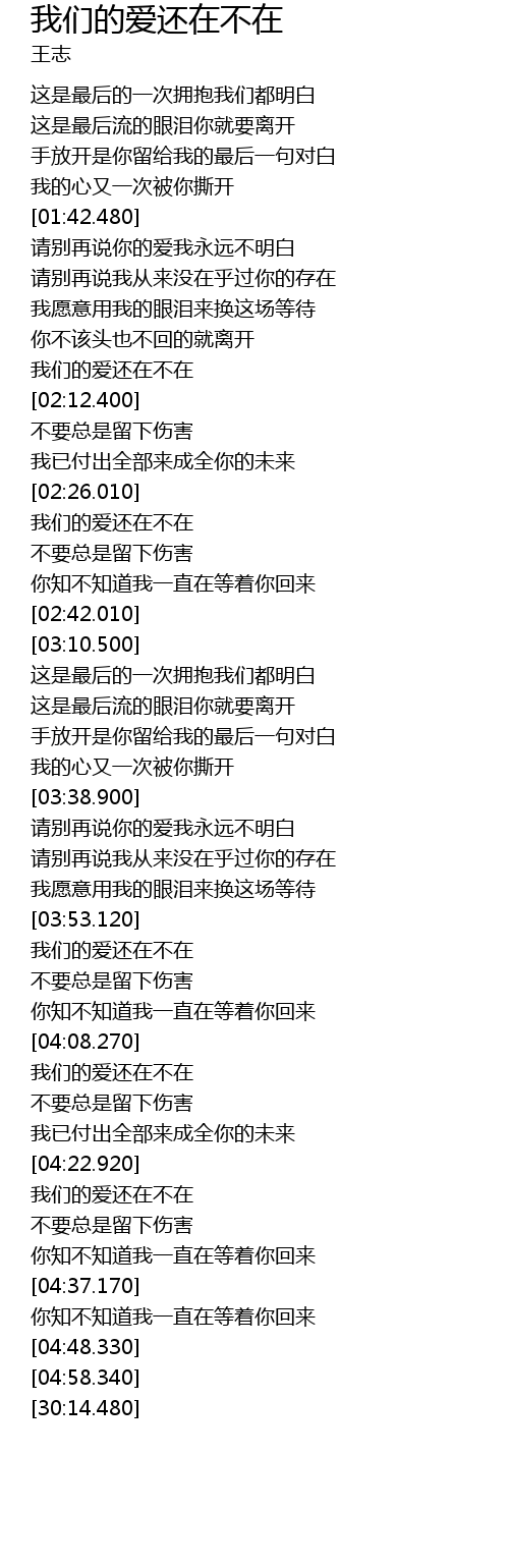 | [04:23.140] | wǒ men de ài hái zài bù zài |