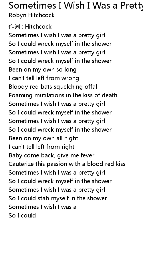 | Song | Sometimes I Wish I Was a Pretty Girl |
