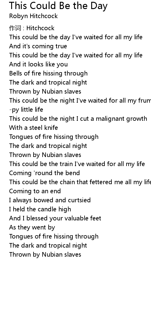 | This could be the day I've waited for all my life | |