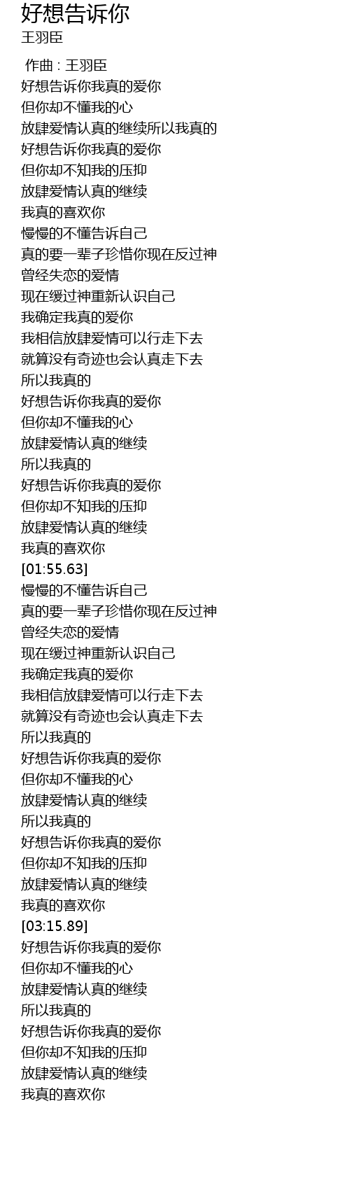 | [01:38.59] | 好想告诉你我真的爱你 |