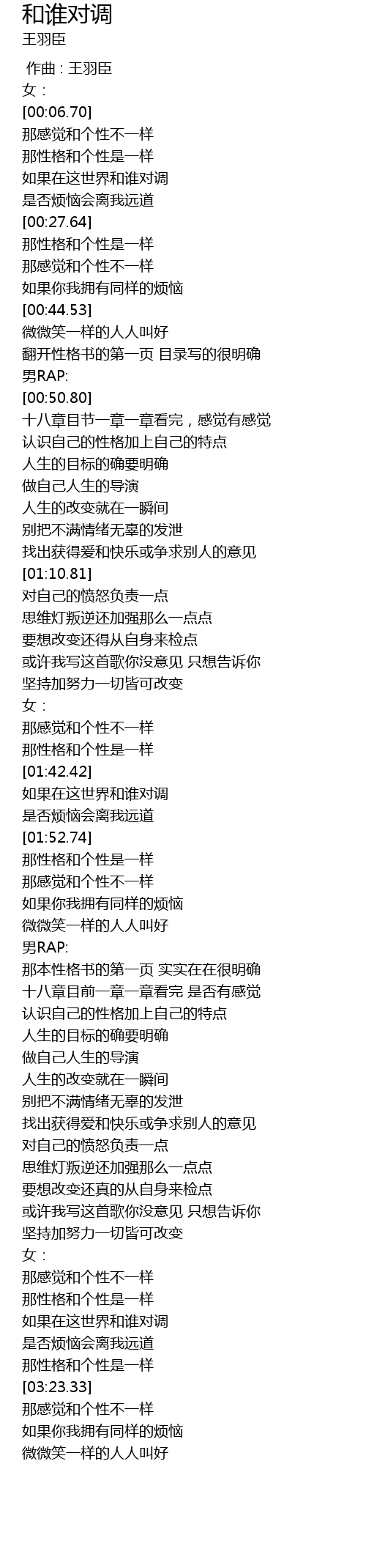 | [03:19.58] | nà xìng gé hé gè xìng shì yí yàng |
