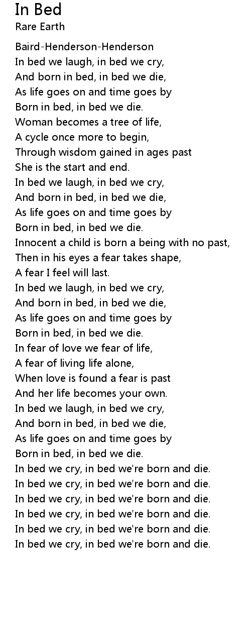 In bed we cry, in bed we're born and die. |