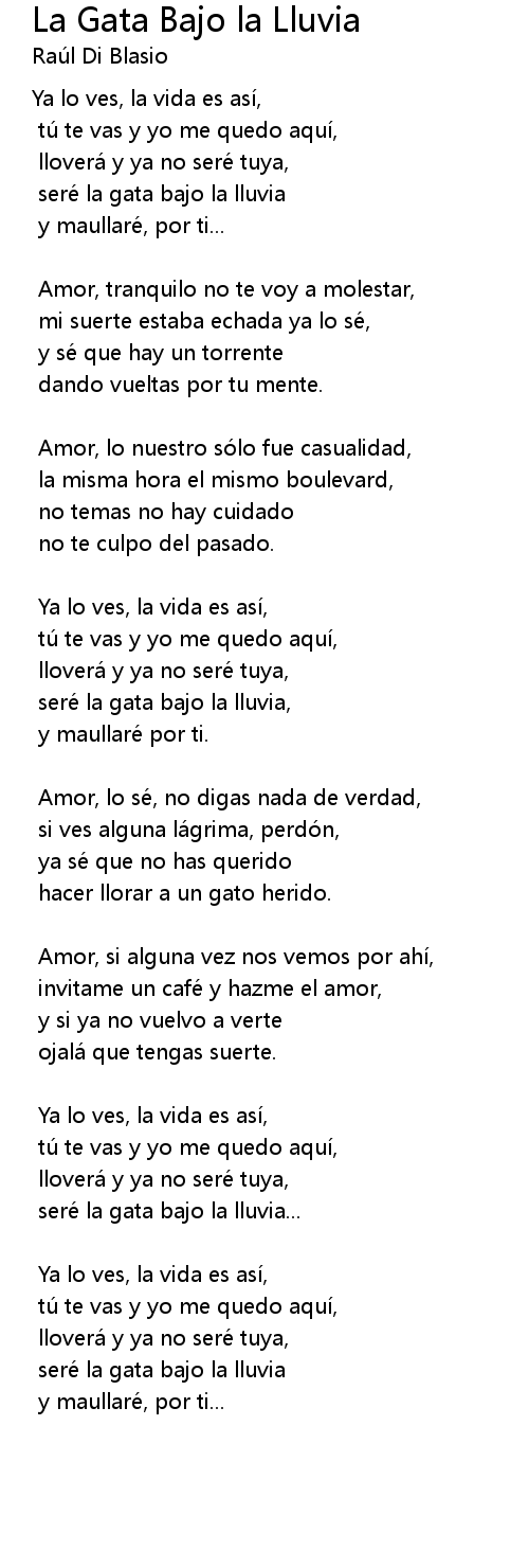 | Song | La Gata Bajo la Lluvia |