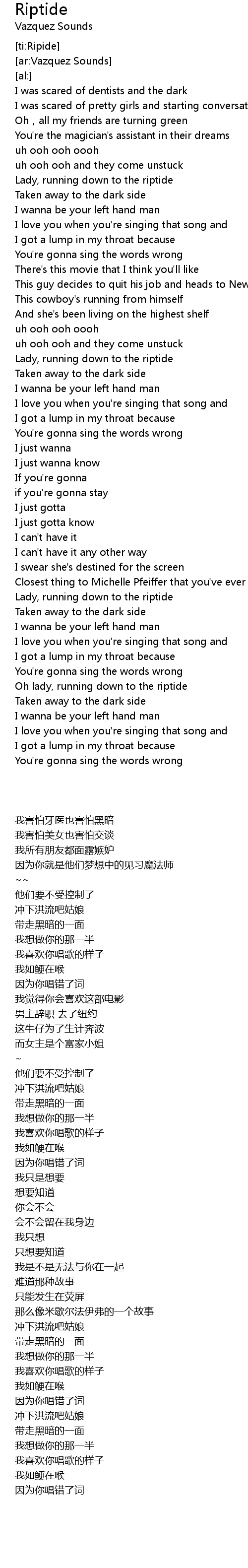 | [02:38.32] | Oh lady, running down to the riptide |