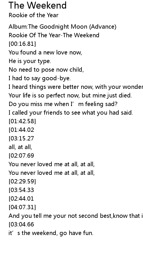 | [00:11.81] | Rookie Of The YearThe Weekend |