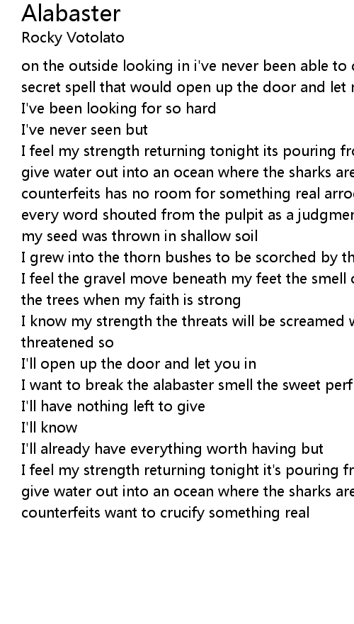 I feel my strength returning tonight it's pouring from the purest well to ever give water out into an ocean where the sharks are circling carnival of counterfeits want to crucify something real |