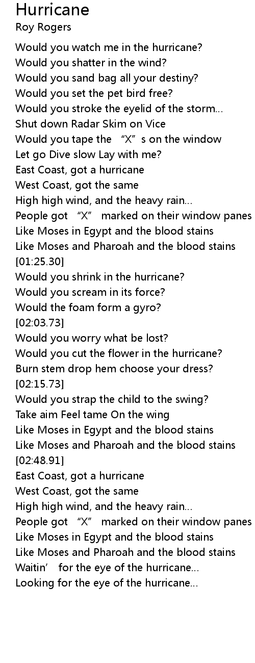 | [00:21.58] | Would you watch me in the hurricane? |