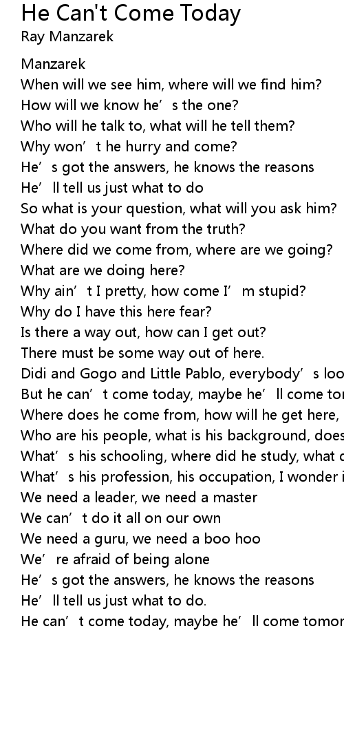 | But he can' t come today, maybe he' ll come tomorrow. | |