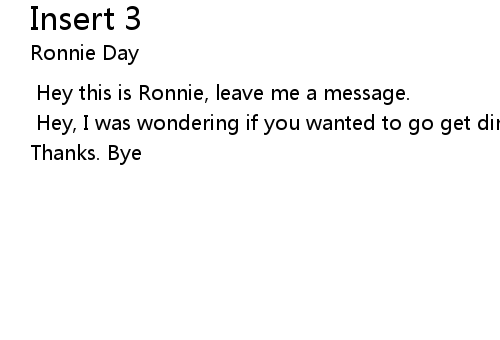 [Answering machie] Hey this is Ronnie, leave me a message.