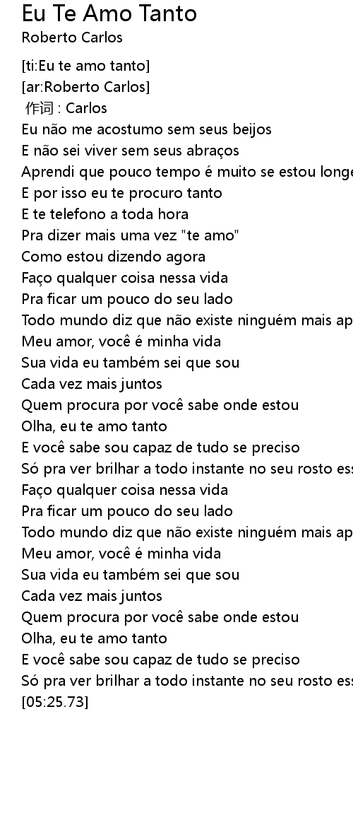 | [01:45.77] | Todo mundo diz que n o existe ningue m mais apaixonado |