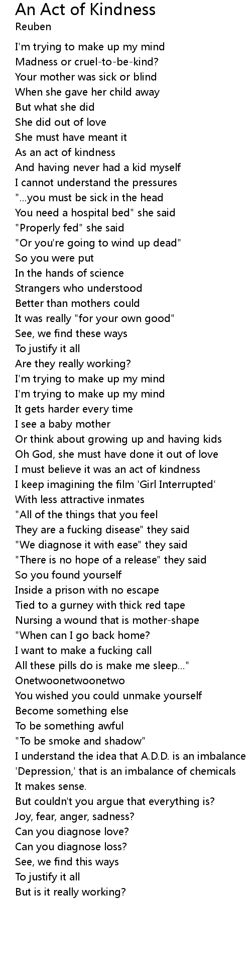 I must believe it was an act of kindness |