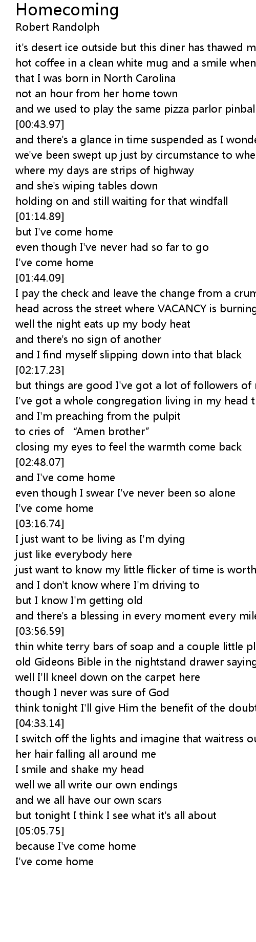 | [01:16.41] | but I' ve come home |