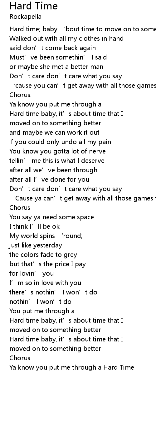 | Ya know you put me through a Hard Time |