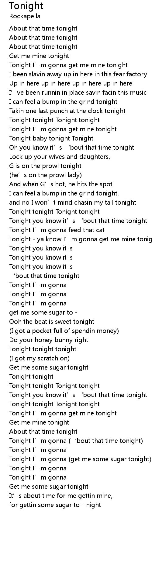 | Tonight I' m gonna ' bout that time tonight | |