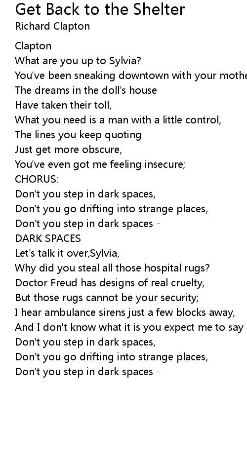 Get Back to the Shelter Lyrics