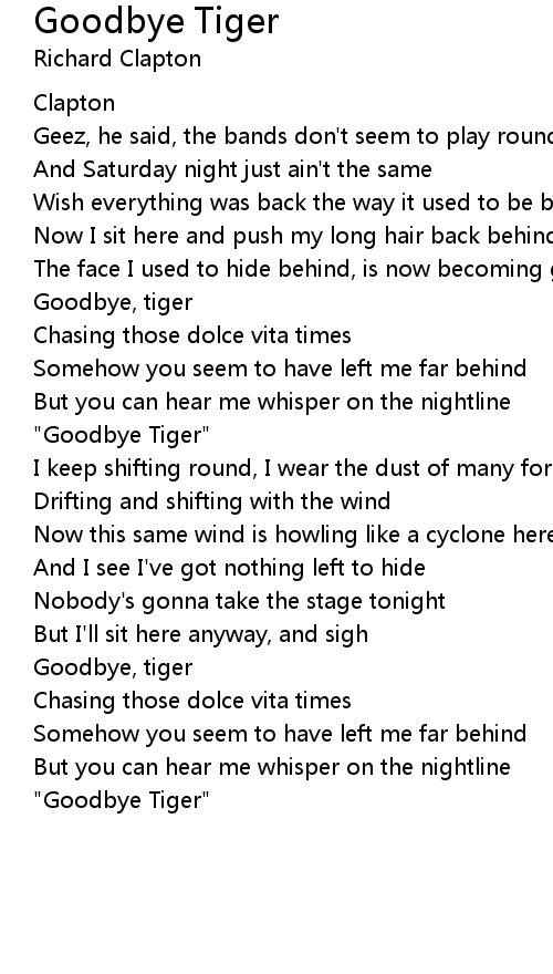 Goodbye Tiger Lyrics