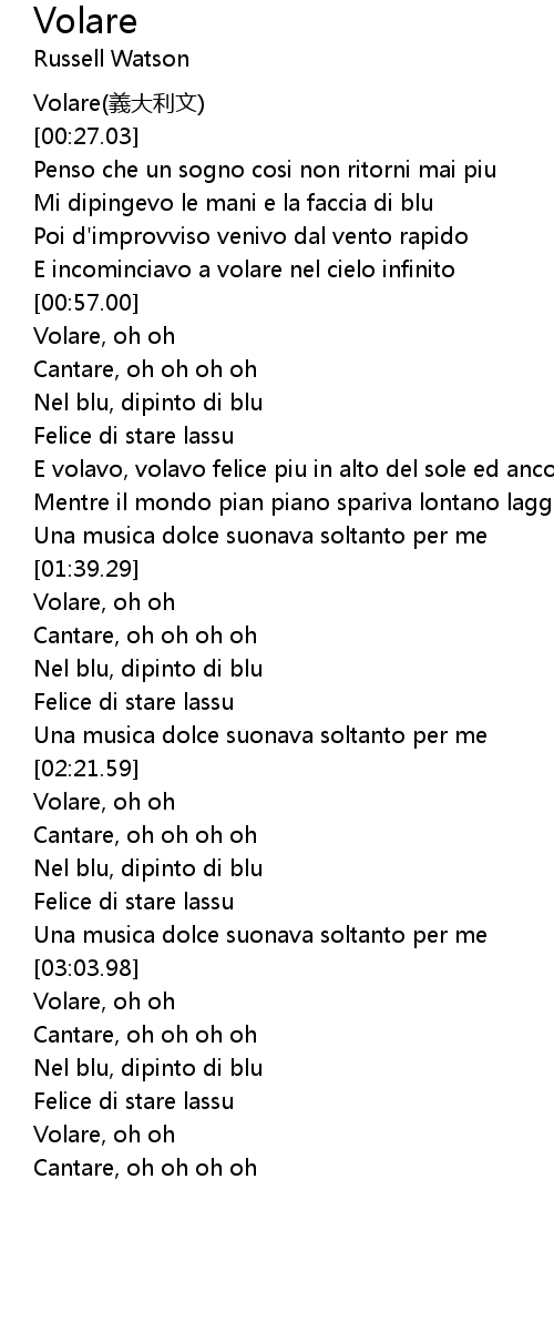 | [03:26.11] | Volare, oh oh |