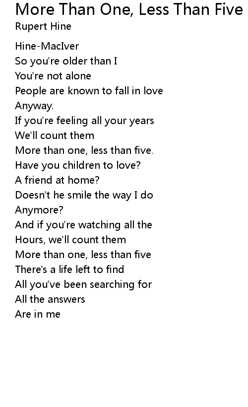 | Song | More Than One, Less Than Five |