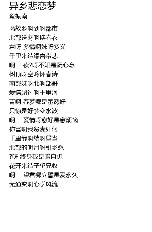| [01:40.44] | nán bù mèi ya běi a bù gē |