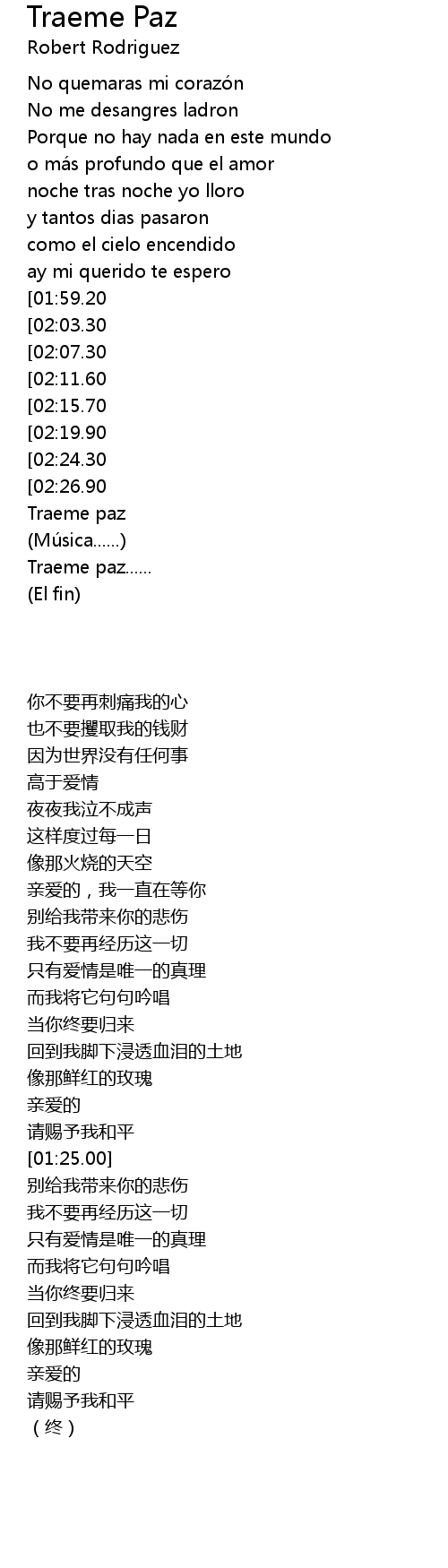 | [02:30.00] | Traeme paz...... |