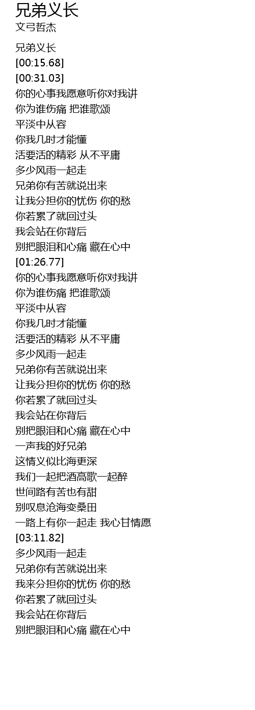 | [03:16.50] | 兄弟你有苦就说出来 |