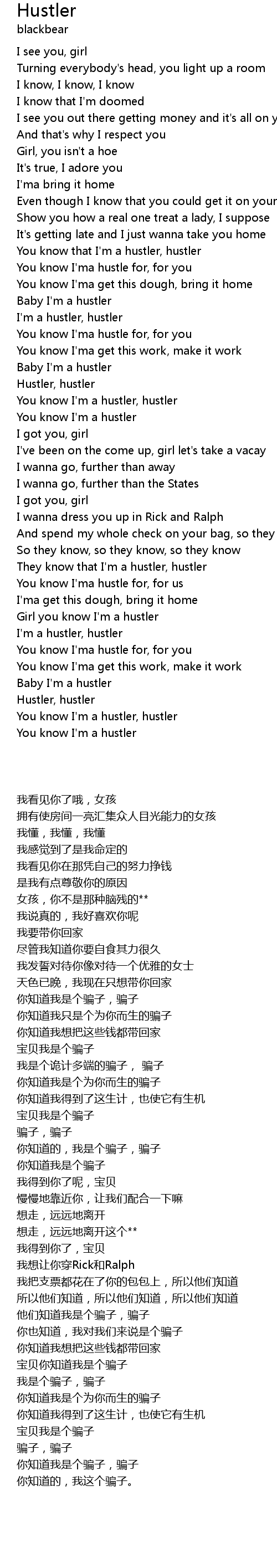 | [02:24.000] | They know that I'm a hustler, hustler |