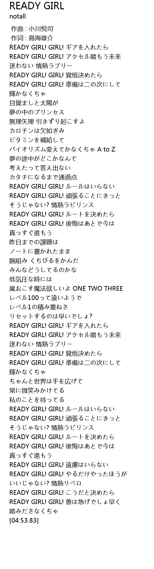 | [03:59.57] | READY GIRL! GIRL! ルールはいらない |