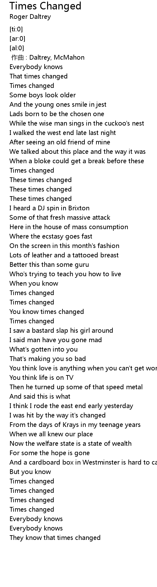 | [00:58.030] | These times changed |
