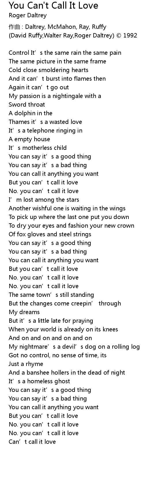 | But you can' t call it love | |