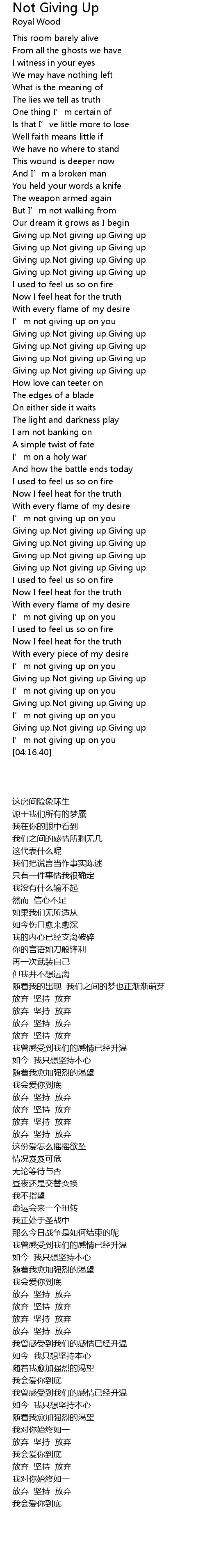 | [01:36.49] | Giving up.Not giving up.Giving up |
