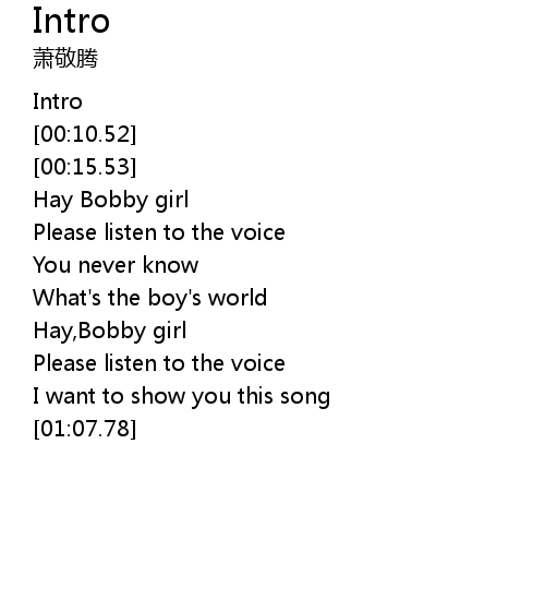 | [00:19.17] | Hay Bobby girl |
