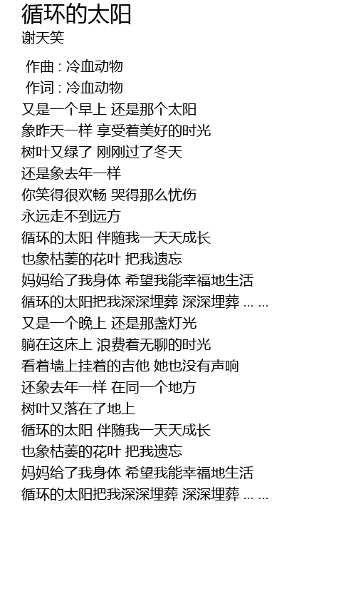 | [02:17.150] | xun huan de tai yang ba wo shen shen mai zang shen shen mai zang ... ... |