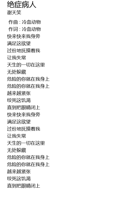 | [00:01.00] | zuò cí : lěng xuè dòng wù |