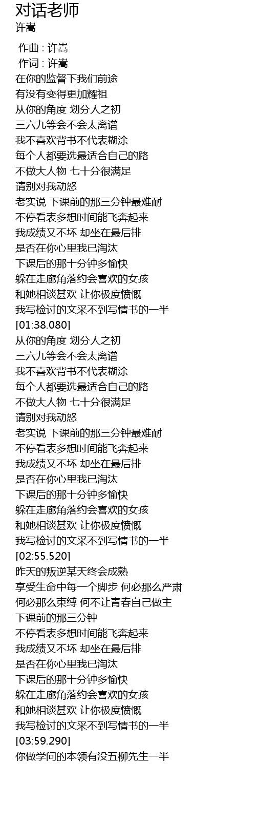 | [03:53.320] | 我写检讨的文采不到写情书的一半 |