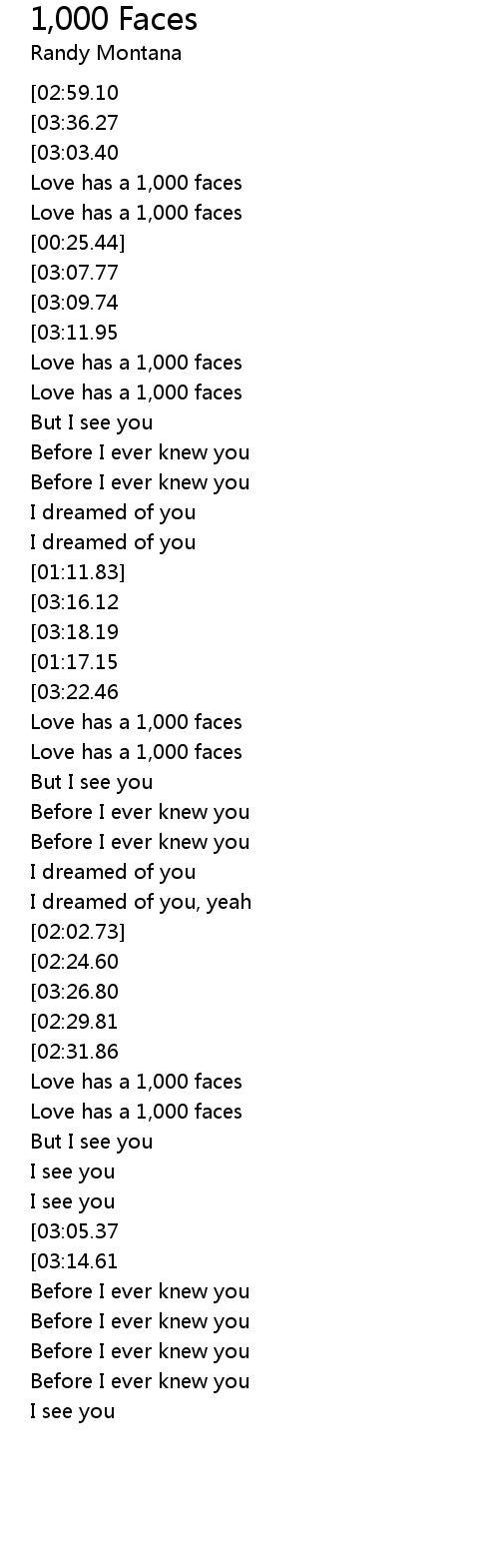 1,000 Faces Lyrics