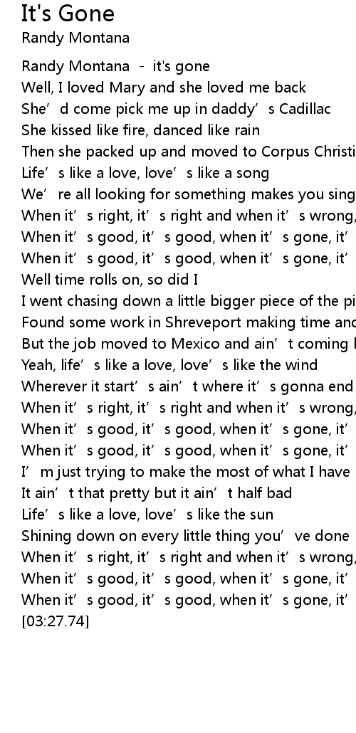 | [00:45.73] | When it’s good, it’s good, when it’s gone, it’s gone |