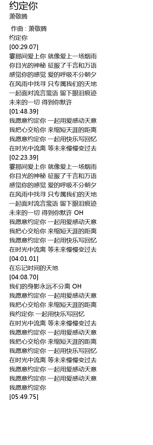 | [01:49.89] | 我愿意约定你 一起用爱感动天意 |