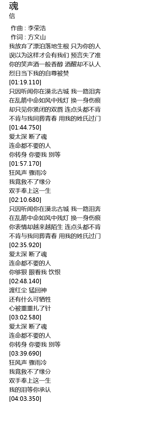 | [01:26.190] | 在乱箭中命如风中残灯 换一身伤痕 |