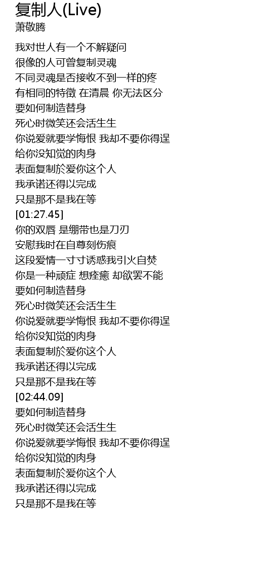 | [00:27.09] | 很像的人可曾复制灵魂 |