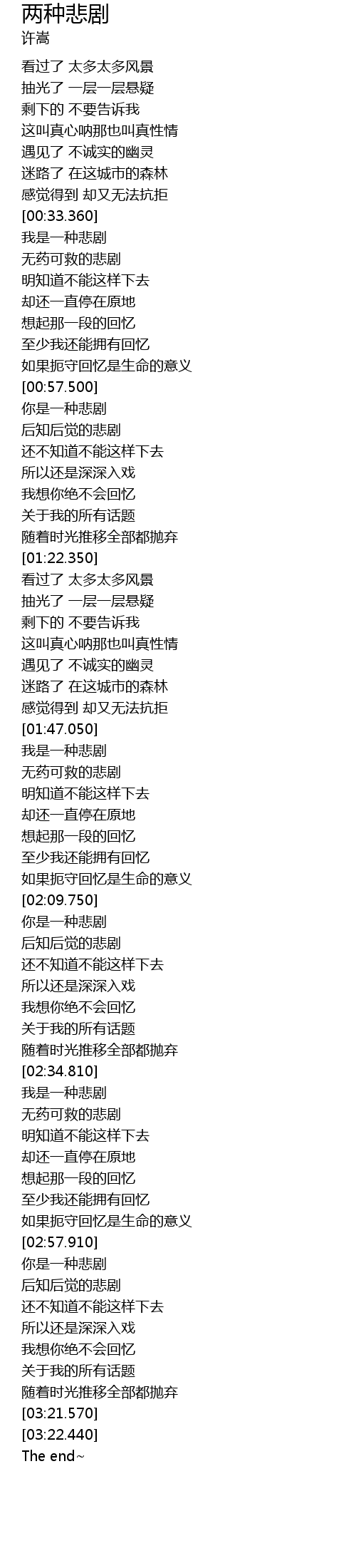 | [00:15.030] | 抽光了 一层一层悬疑 |