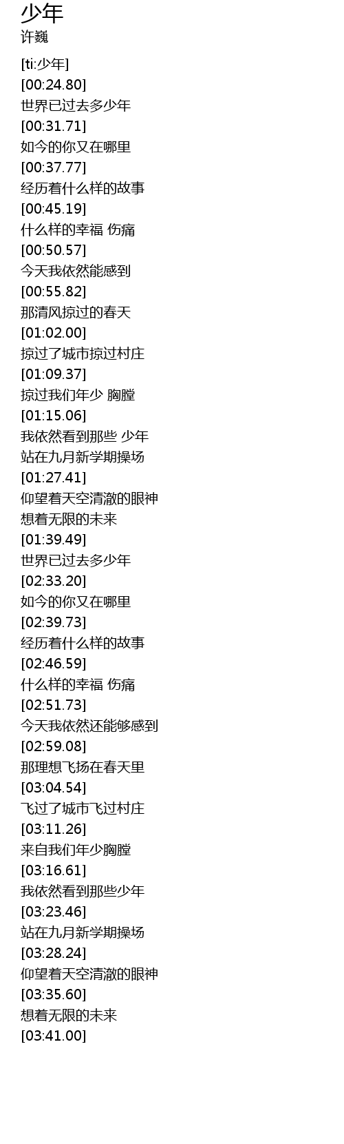 | [00:28.55] | shi jie yi guo qu duo shao nian |