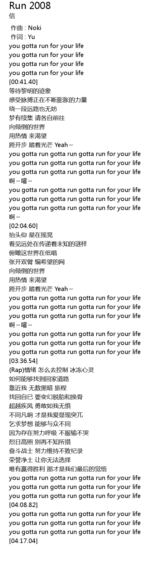 | [02:00.93] | you gotta run gotta run gotta run for your life |